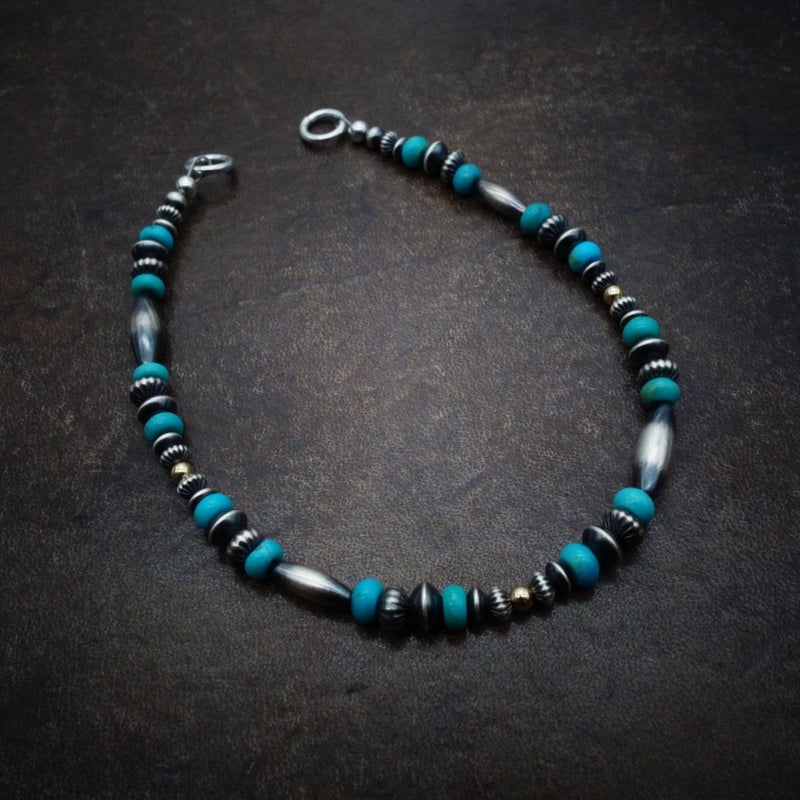シルバー×ゴールド×ターコイズ ビーズブレスレット