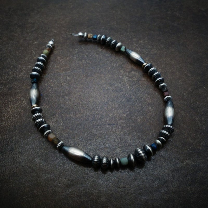 インディアンジュエリーにセットされているターコイズはオーバル型やティアドロップ型の整ったフォルムに形成されていることが大半の中、REDMAN.ではあえてナチュラルなフォルムに形成し一点一点仕上げております。