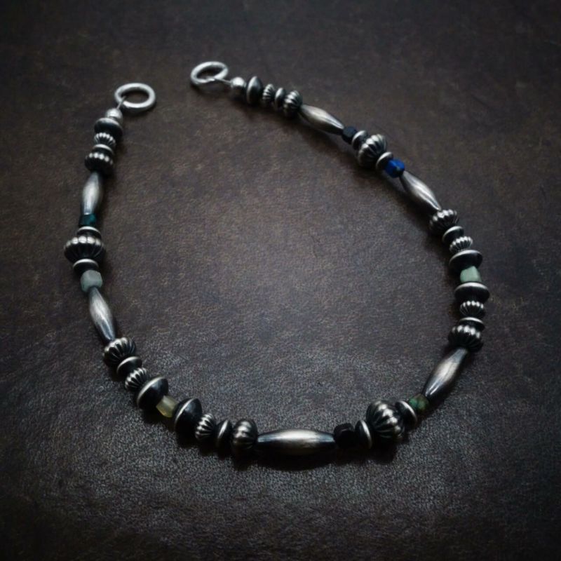 4. シルバー × ターコイズ ビーズ ブレスレット