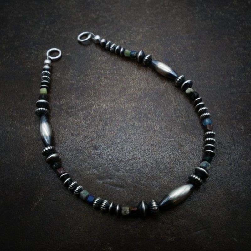 インディアンジュエリーにセットされているターコイズはオーバル型やティアドロップ型の整ったフォルムに形成されていることが大半の中、REDMAN.ではあえてナチュラルなフォルムに形成し一点一点仕上げております。