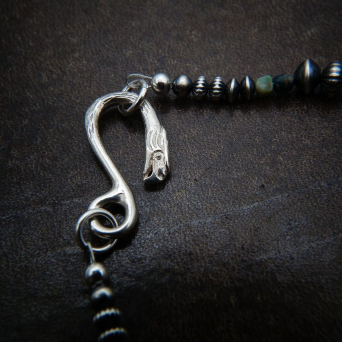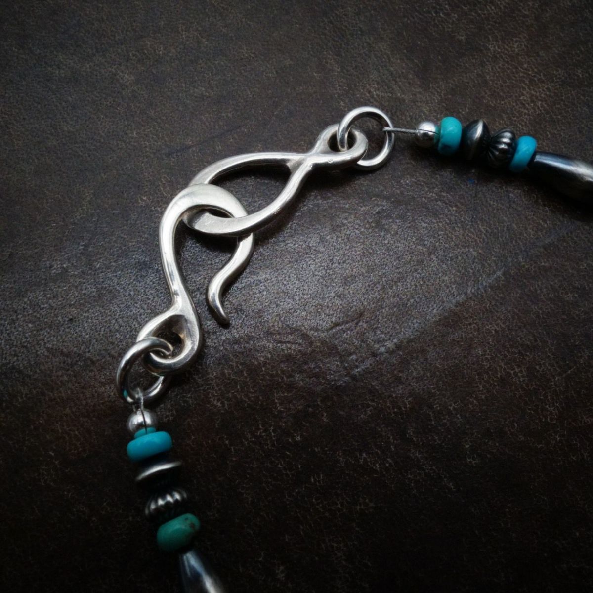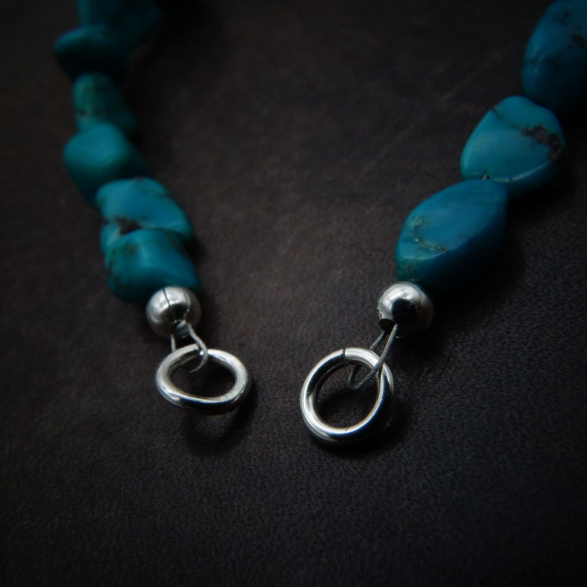 ターコイズ付き 大フェザー チェーンブレスレット 左向き