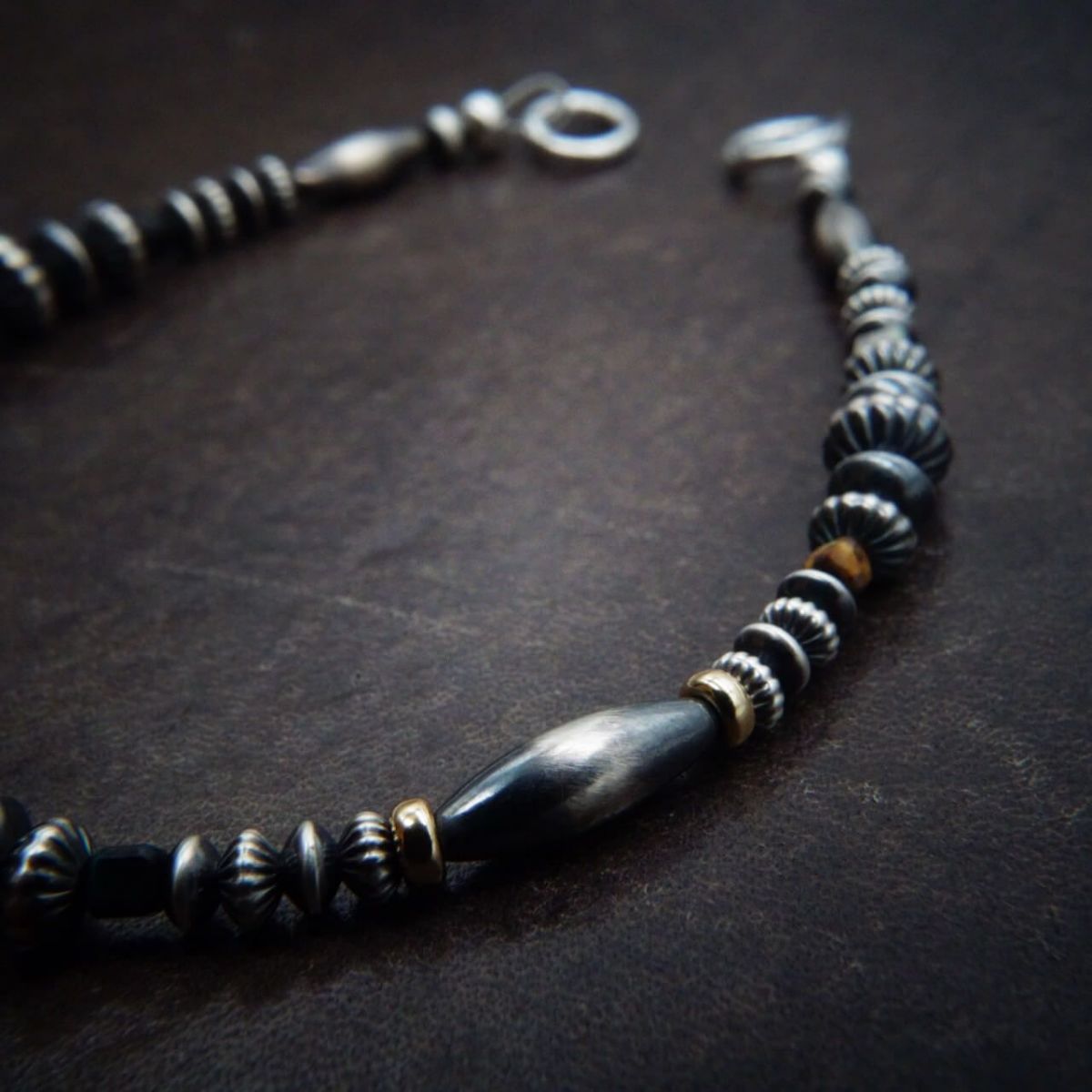 シルバー × ゴールド × ターコイズ ビーズ ブレスレット