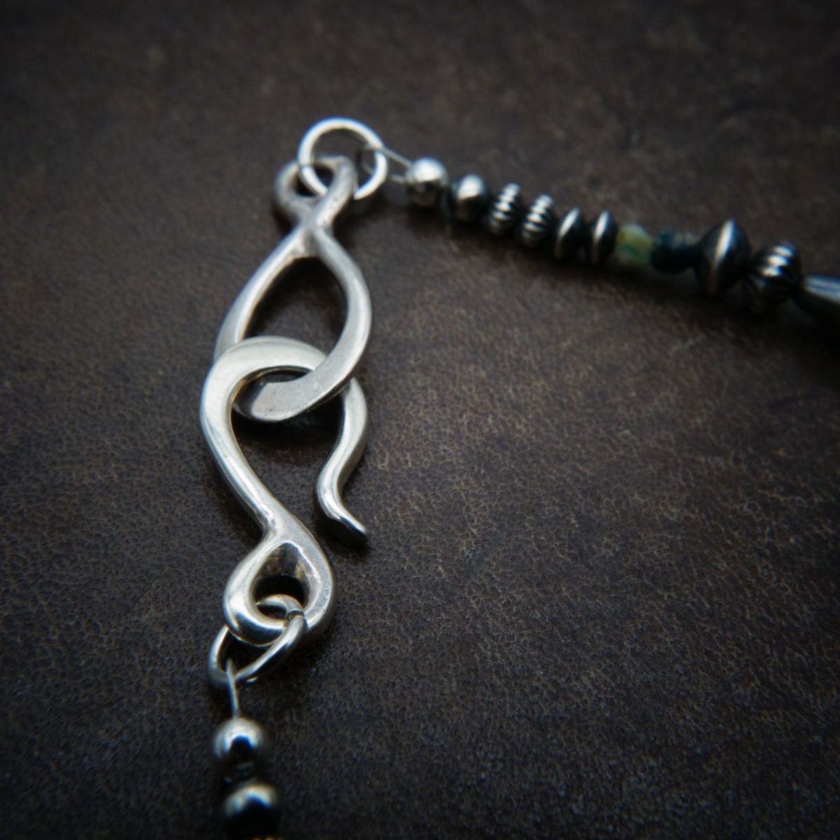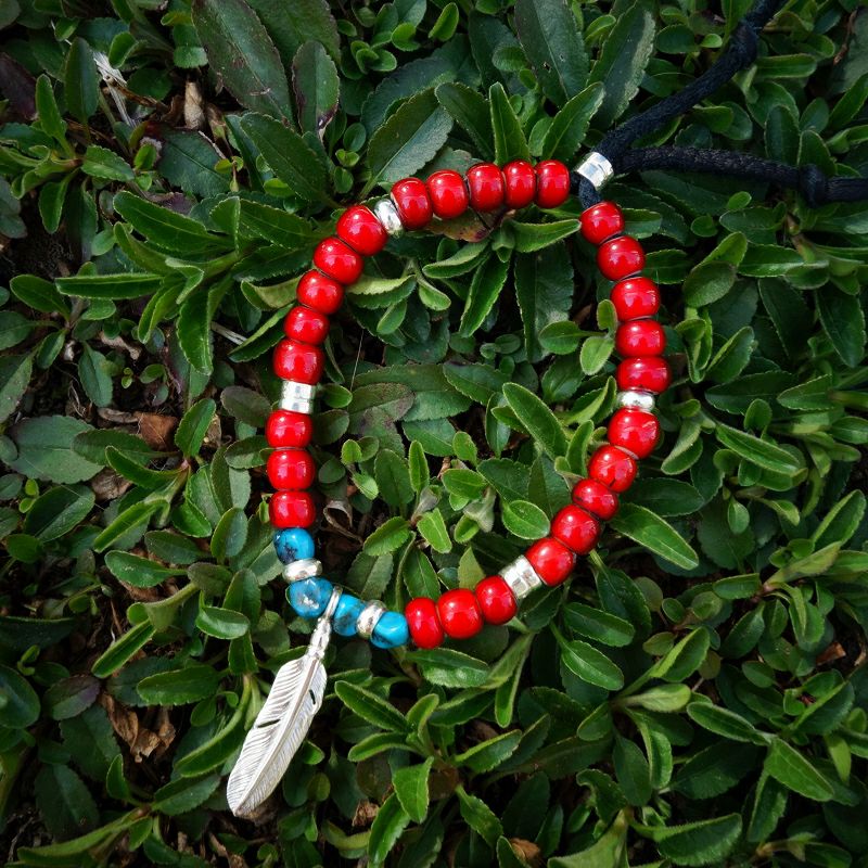 ターコイズ付き 大フェザー チェーンブレスレット 左向き
