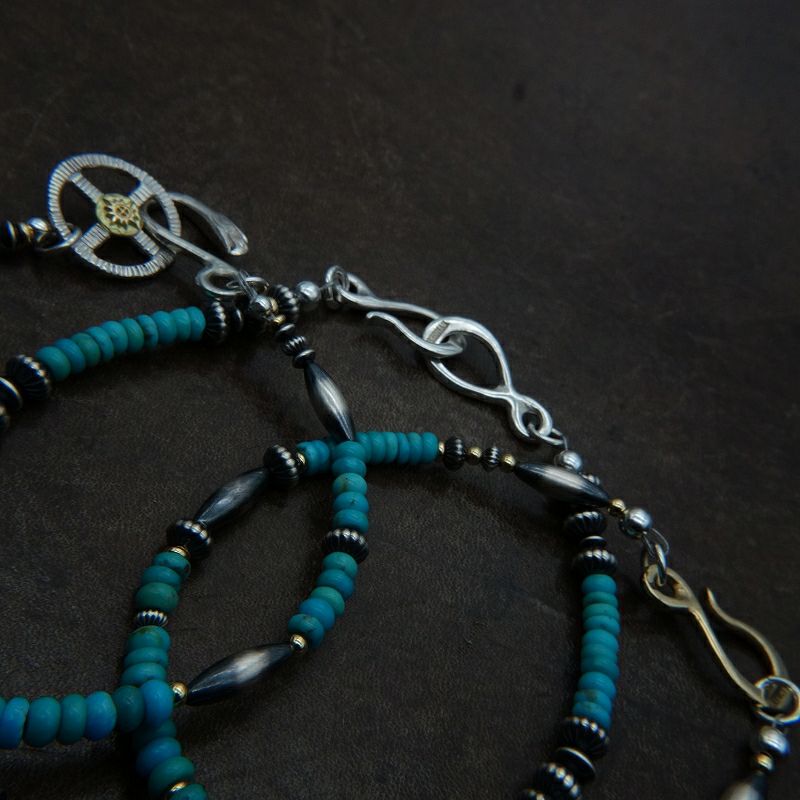 シルバー × ゴールド × ターコイズ ビーズ ブレスレット
