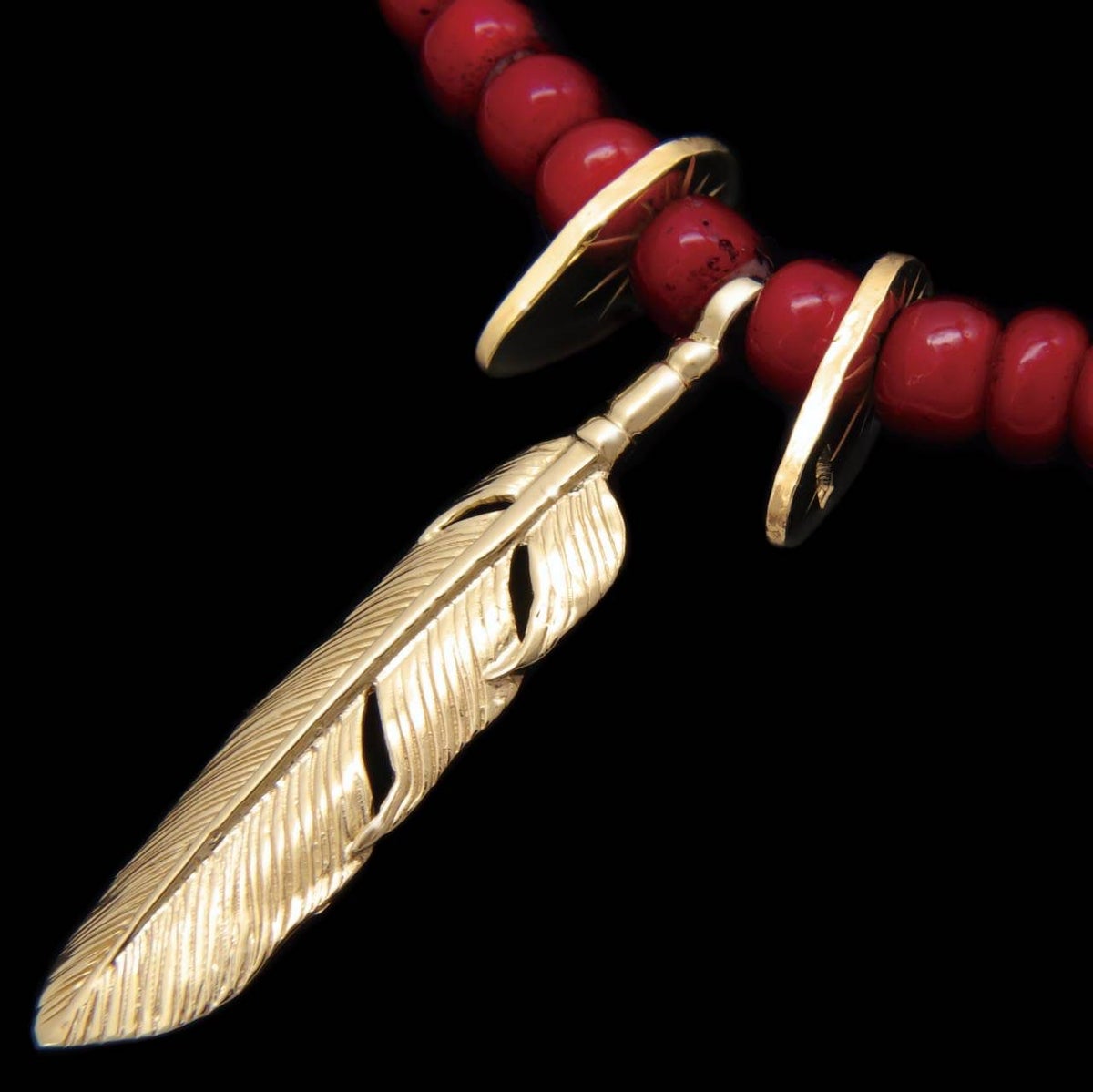 フェザー、イーグル、ターコイズ、アンティークビーズ、革紐。