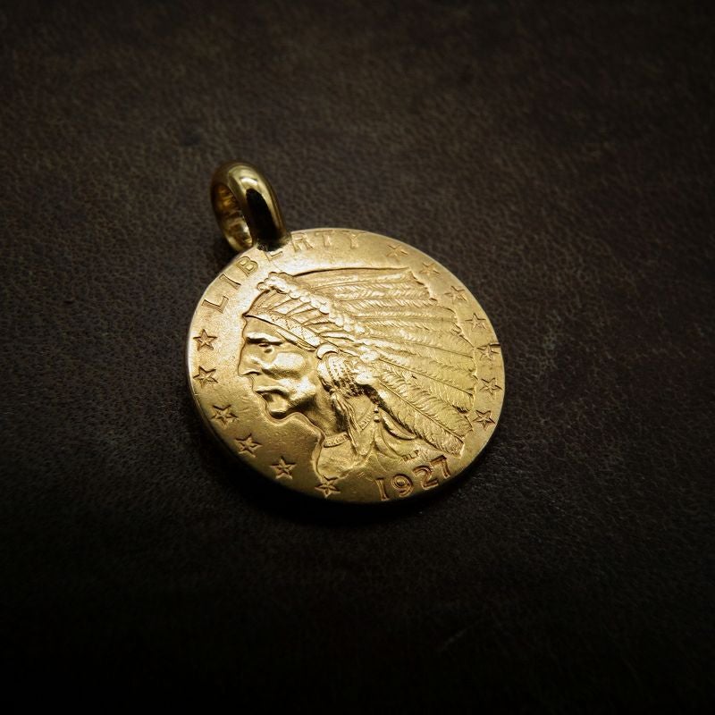 実際にアメリカで使用されていたアンティークゴールドコインを使用、贅沢なベースを活かしてシンプルにチャーム兼ペンダントトップに仕上げた逸品です。