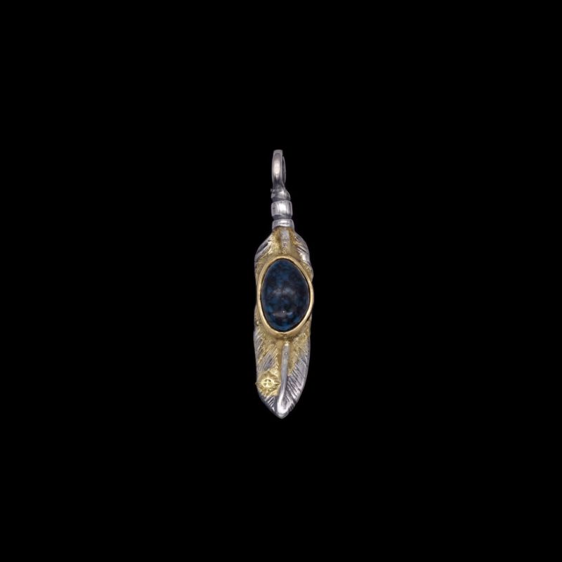 4. ターコイズ/メタル付き 極小フェザー 右向き ペンダントトップ