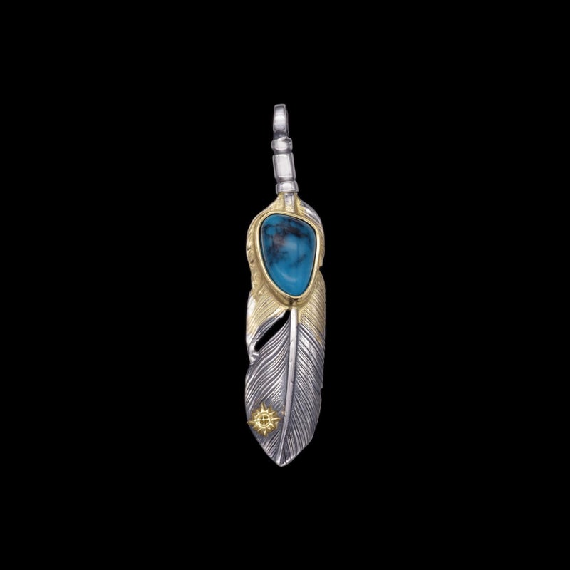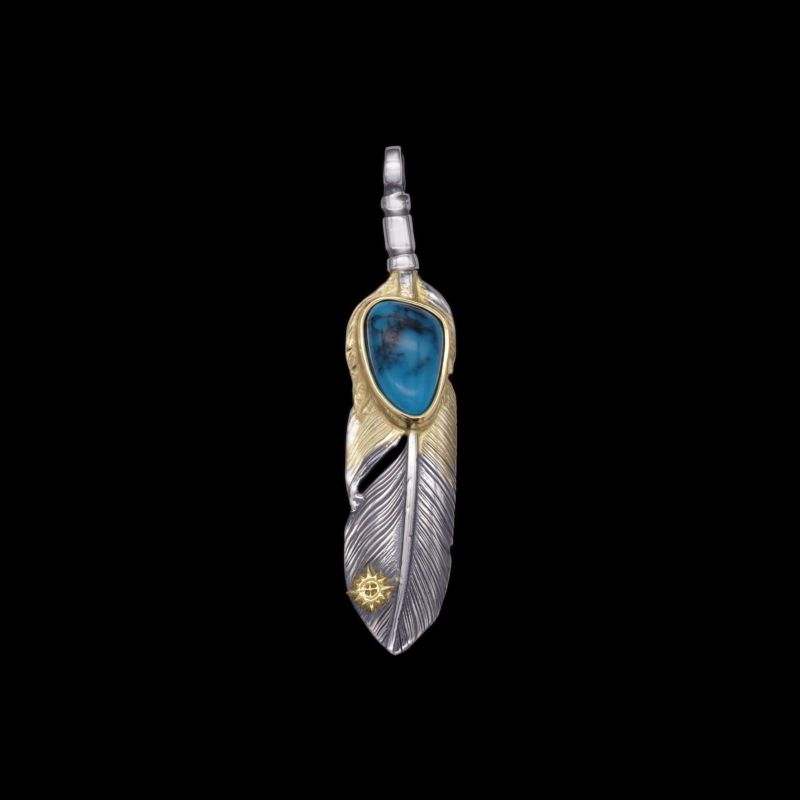 4. ターコイズ/メタル付き 中フェザー 右向き ペンダントトップ