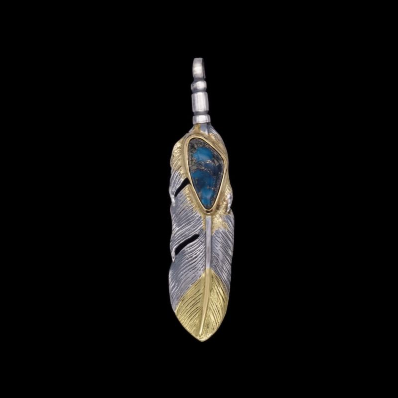 ターコイズ付き 大フェザー 右向き ペンダントトップ