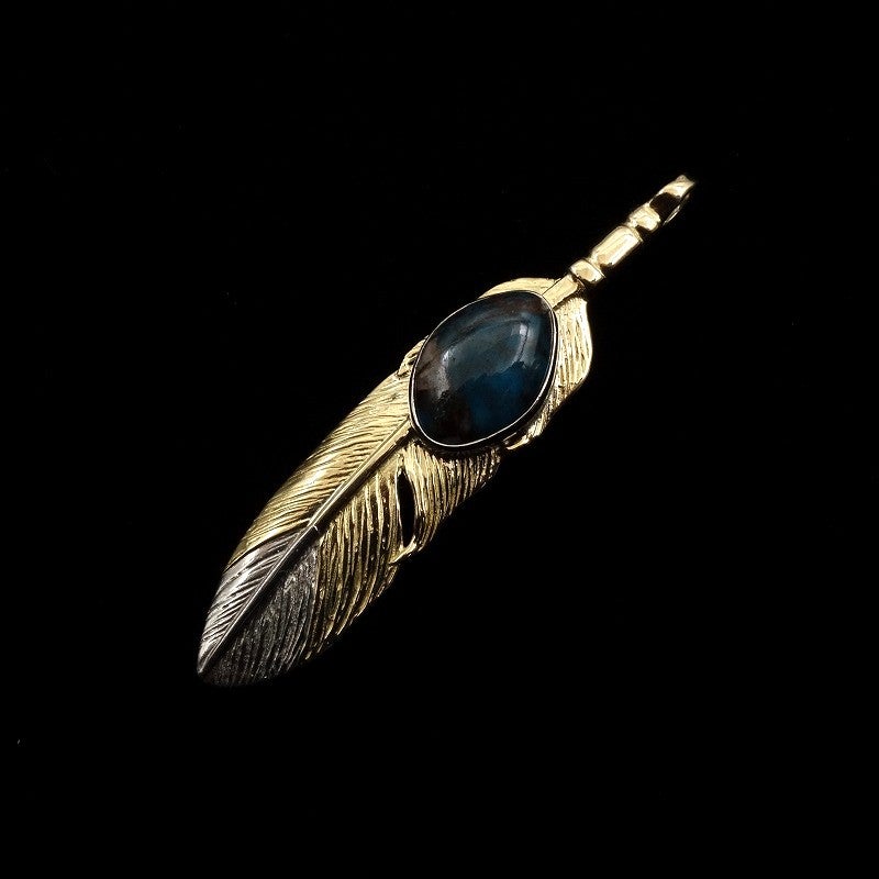 ゴールド×プラチナの大フェザー左に上質なターコイズをプラチナ枠でセット。