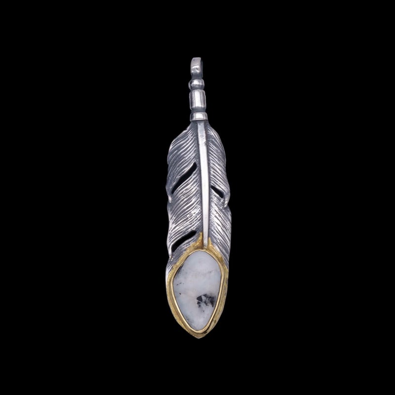 ホワイトバッファロー付き 大フェザー 右向き ペンダントトップ