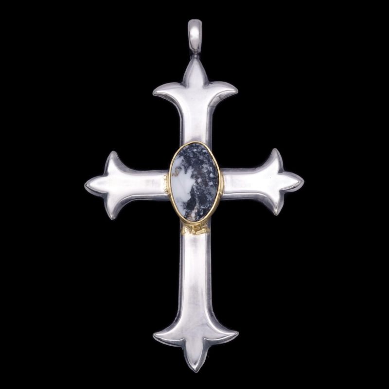 4. ホワイトバッファロー付き ホーンクロス 大 ペンダントトップ