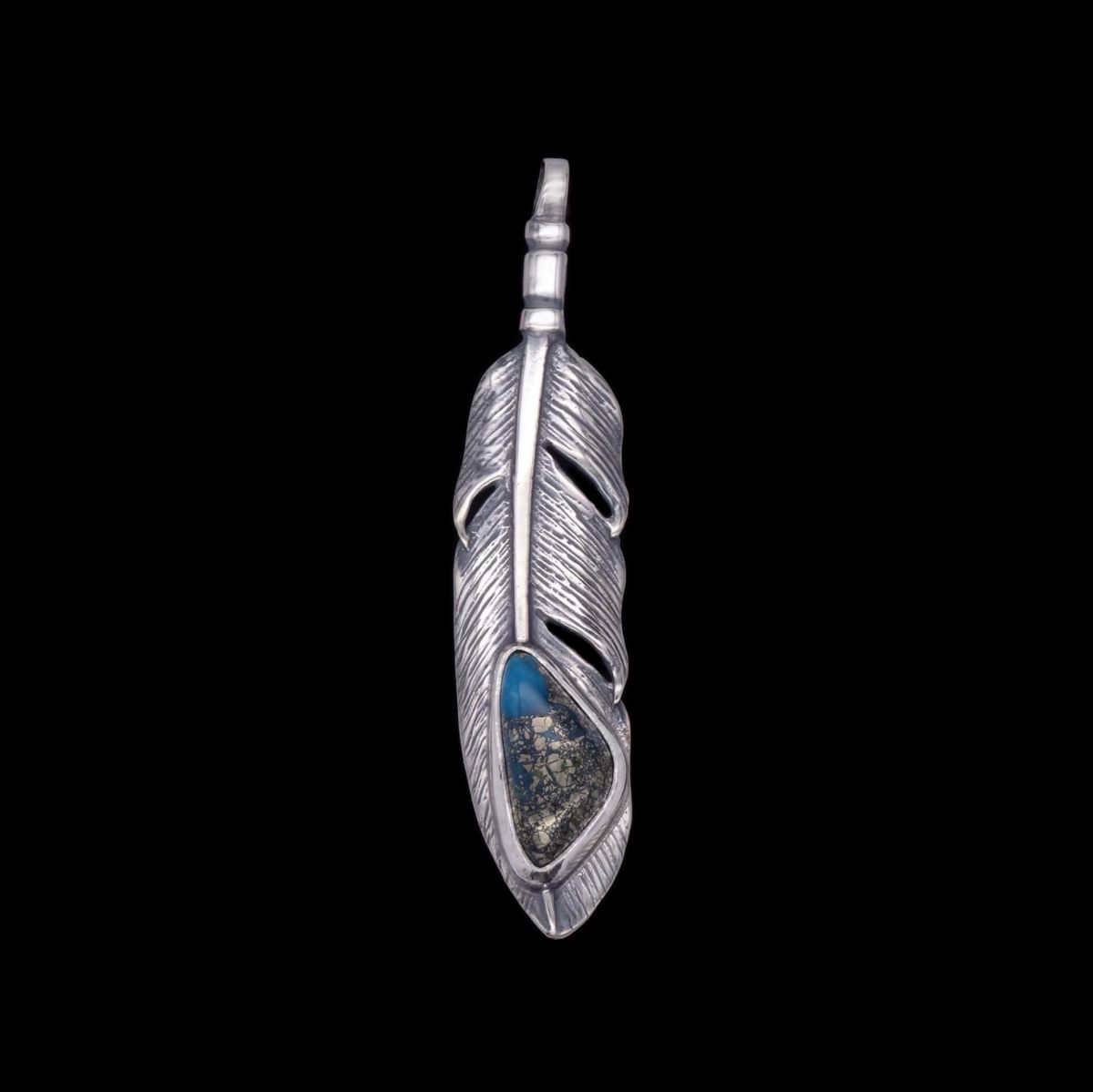 ターコイズ付き 大フェザー 左向き ペンダントトップ