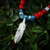 アンティークホワイトハーツビーズとターコイズを使用したブレスレット