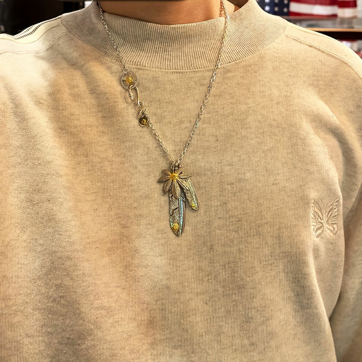 大フェザー×中フェザー×小メタルチャーム/50cmネックレスカスタム