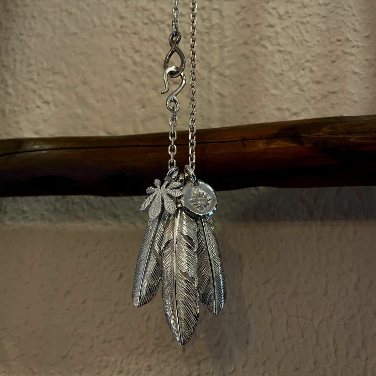 大フェザー×ホースチェスナット×小メタルチャーム/50cmネックレスカスタム