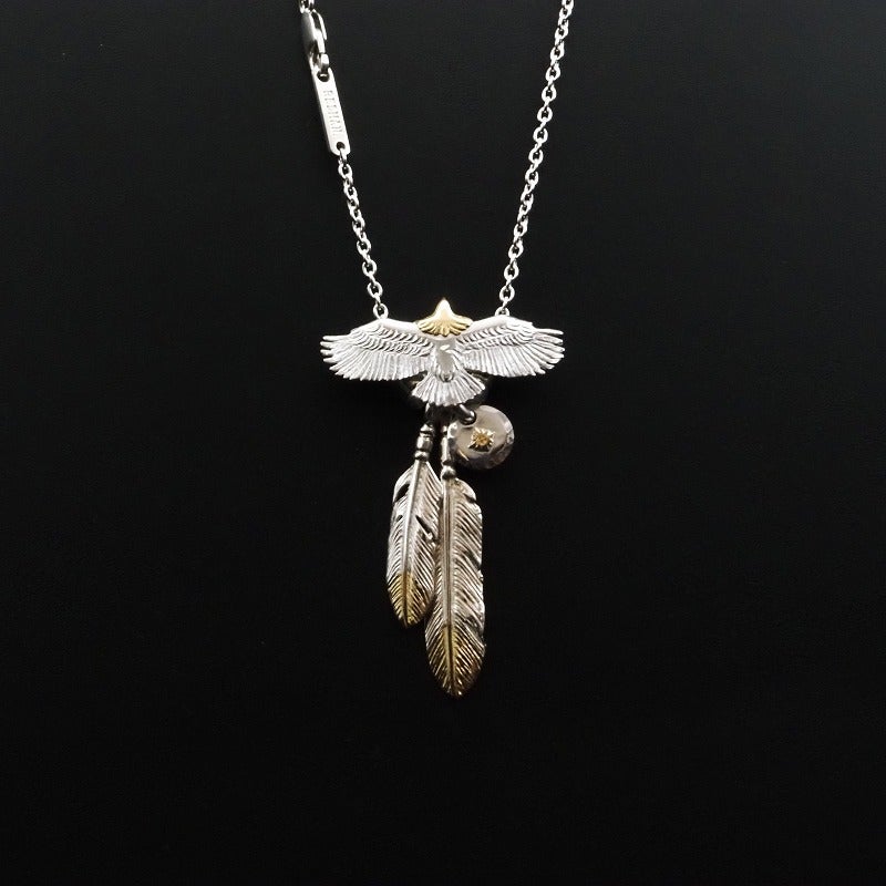 5. 極小ヤングイーグル×フェザー×メタルチャーム/ネックレスカスタム(コンビ)