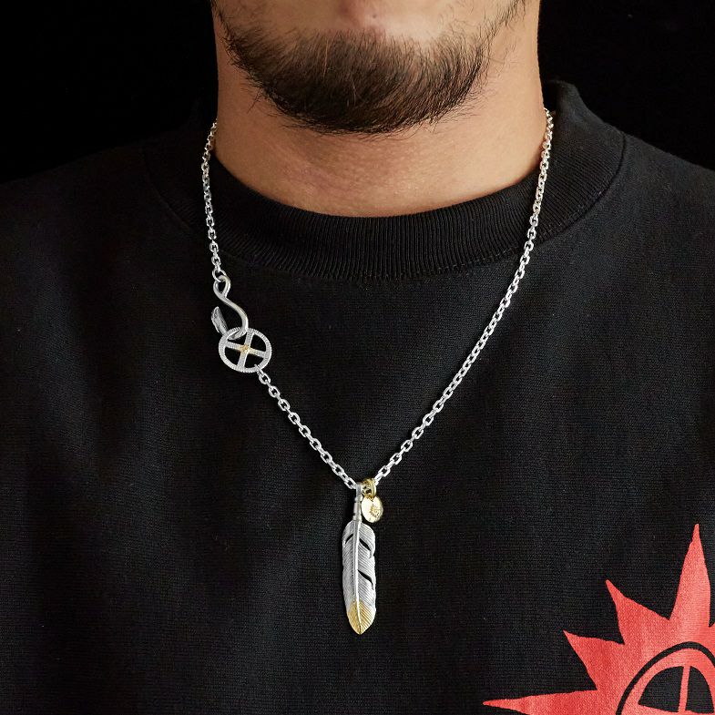 大フェザー×小メタルチャーム/50cmネックレスカスタム
