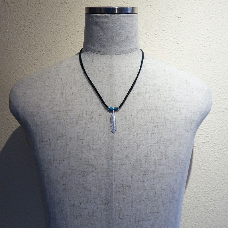 中フェザー左向き×小メタルチャーム×鹿革紐×アンティークビーズ/ネックレスカスタム