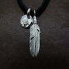 5. 極小フェザー右向き×極小メタルチャーム×鹿革紐×アンティークビーズ/ネックレスカスタム
