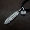 7. 小フェザー左向き×極小メタルチャーム×鹿革紐×アンティークビーズ/ネックレスカスタム