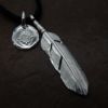 6. 中フェザー右向き×小メタルチャーム×鹿革紐×アンティークビーズ/ネックレスカスタム