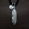 7. メタル付き 小フェザー右向き×極小メタルチャーム×鹿革紐×アンティークビーズ/ネックレスカスタム