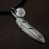 7. メタル付き 大フェザー左向き×小メタルチャーム×鹿革紐×アンティークビーズ/ネックレスカスタム