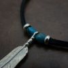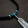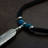 ターコイズビーズを使用したシンプルなフェザートップ+革紐+ビーズのスタンダードセット