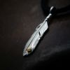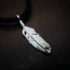 5. メタル付き 極小フェザー左向き×鹿革紐×アンティークビーズ/ネックレスカスタム