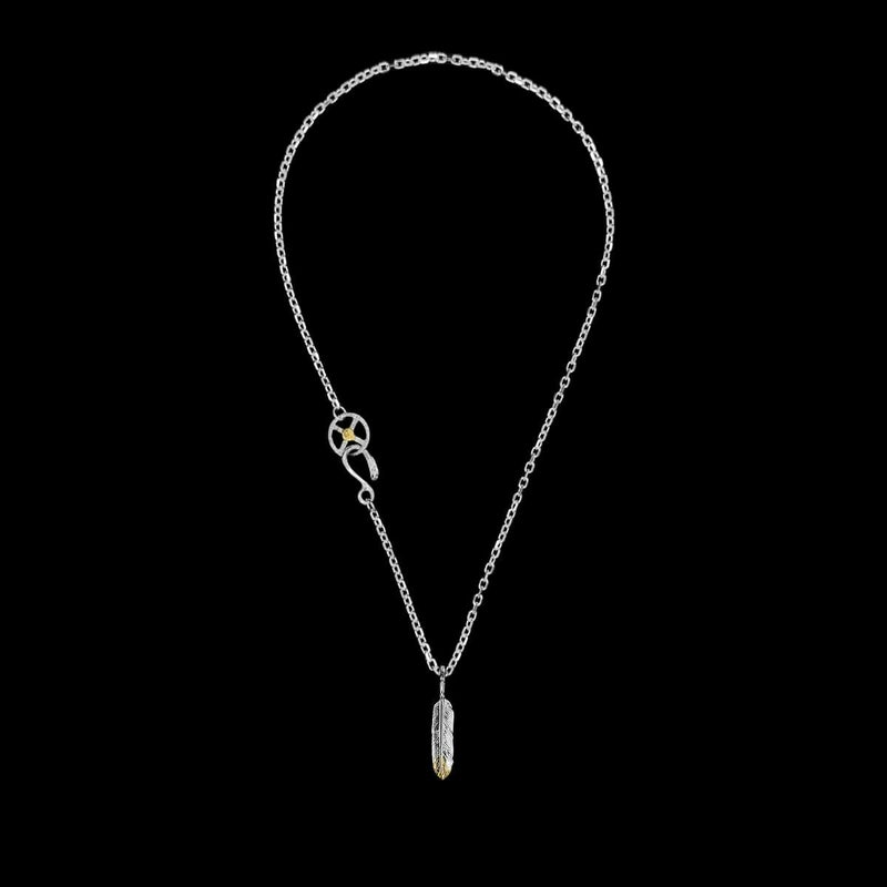 小フェザー左向き(コンビ)×チェーン(小ホイール+イーグルヘッドフック)/ネックレスカスタム