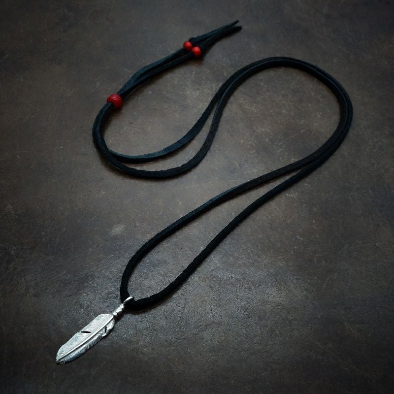 6. 極小フェザー右向き×鹿革紐×アンティークビーズ/ネックレスカスタム