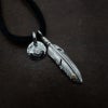 7. メタル付き 極小フェザー右向き×極小メタルチャーム×鹿革紐×アンティークビーズ/ネックレスカスタム