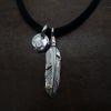 5. メタル付き 極小フェザー右向き×極小メタルチャーム×鹿革紐×アンティークビーズ/ネックレスカスタム
