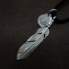7. メタル付き 中フェザー右向き×小メタルチャーム×鹿革紐×アンティークビーズ/ネックレスカスタム