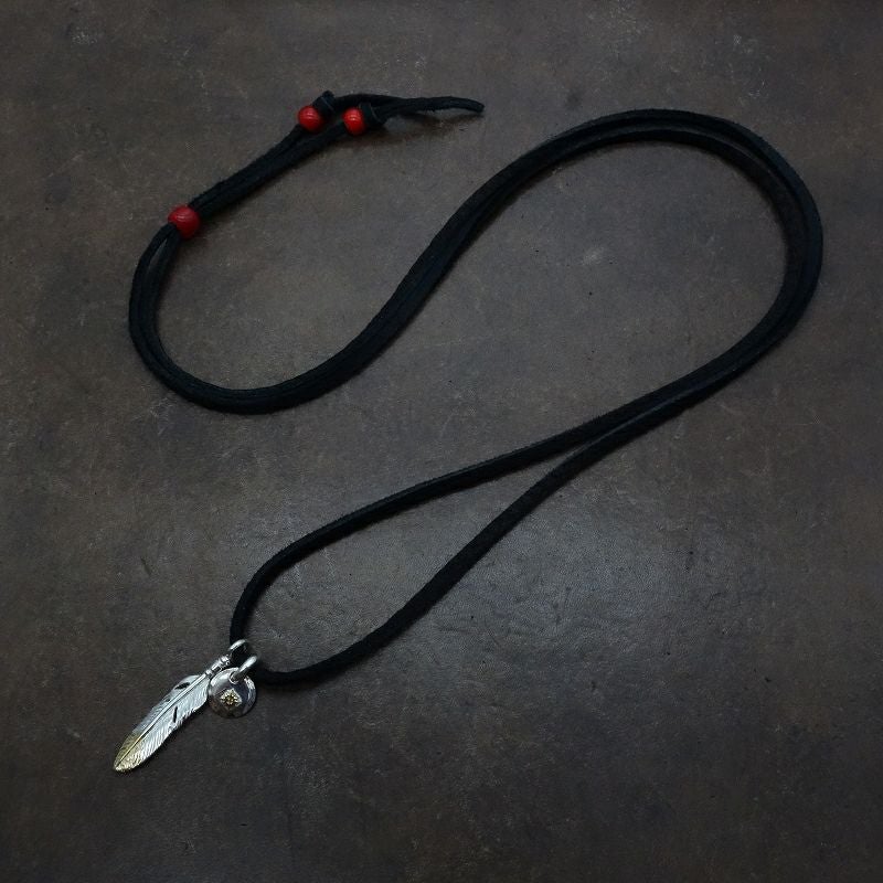 極小フェザー(コンビ)左向き×極小メタルチャーム(コンビ)×鹿革紐×アンティークビーズ/ネックレスカスタム
