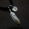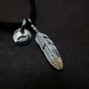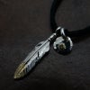 6. 極小フェザー(コンビ)左向き×極小メタルチャーム(コンビ)×鹿革紐×アンティークビーズ/ネックレスカスタム