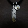 5. 極小フェザー(コンビ)左向き×極小メタルチャーム(コンビ)×鹿革紐×アンティークビーズ/ネックレスカスタム