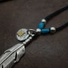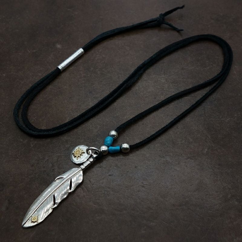 ターコイズビーズを使用したシンプルなフェザートップ+革紐+ビーズのスタンダードセット