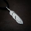 5. 中フェザー右向き×鹿革紐×アンティークビーズ/ネックレスカスタム