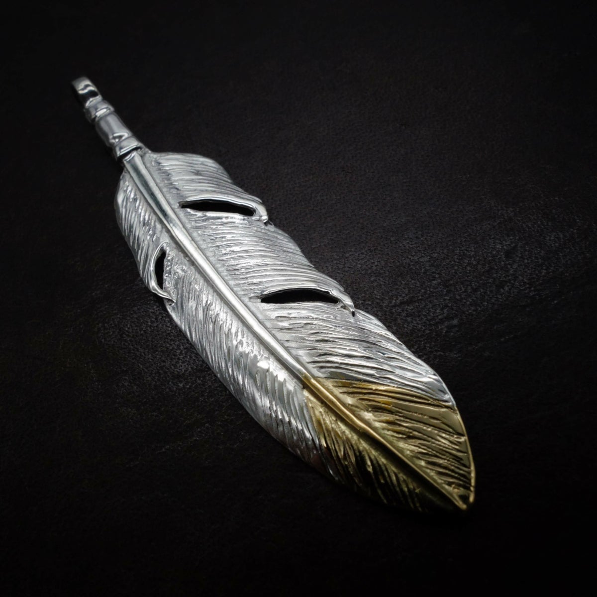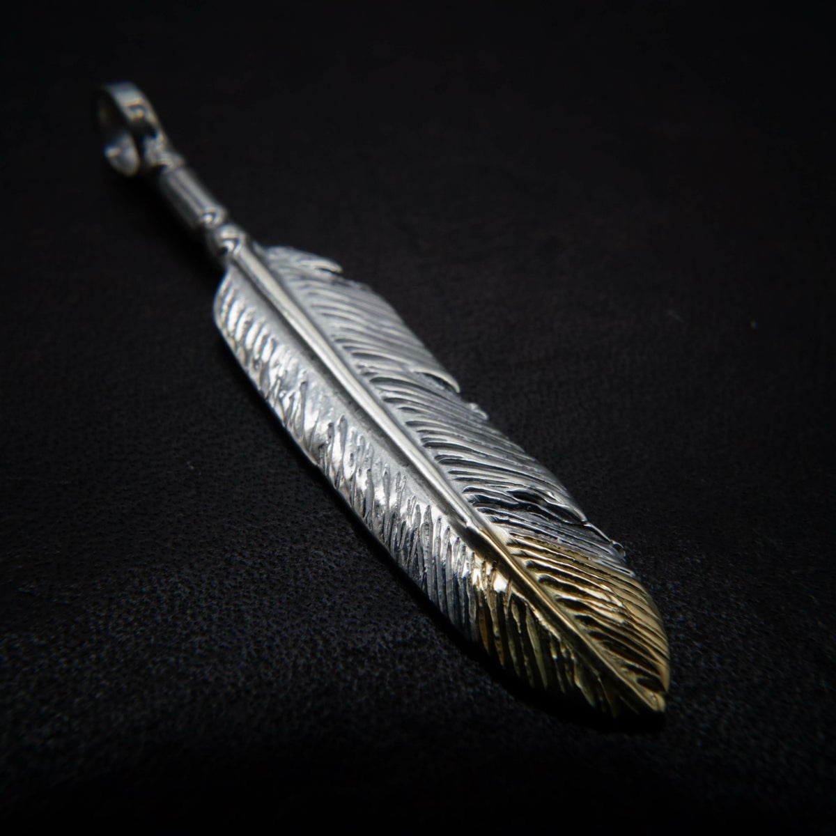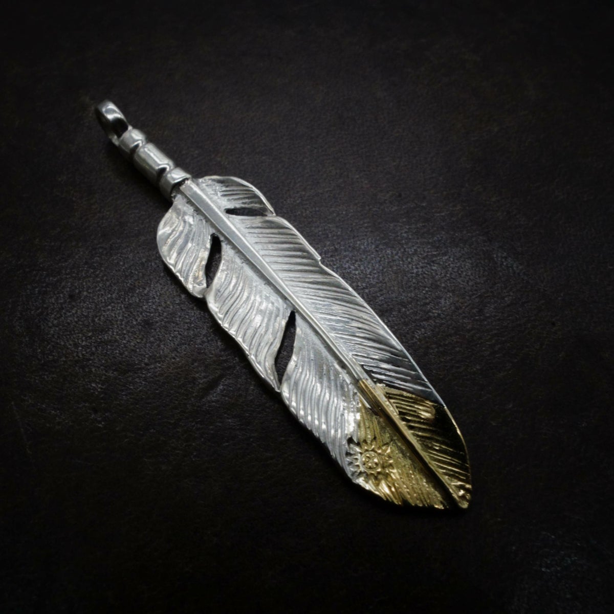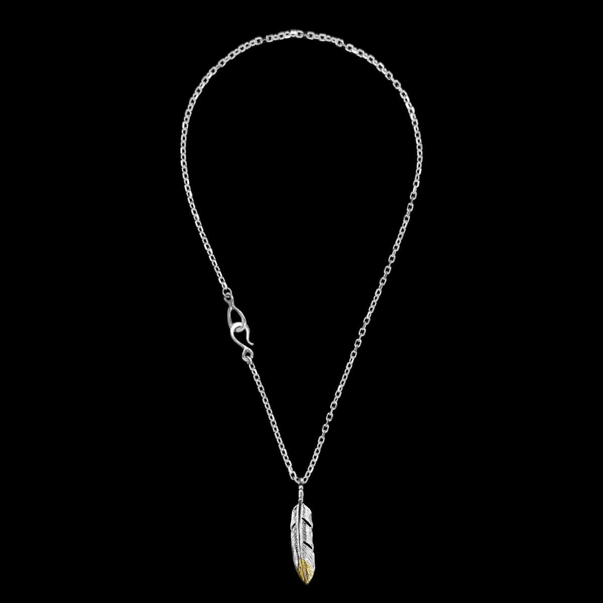 大フェザー左向き(コンビ)×チェーン(プレーンフープ+プレーンフック)/ネックレスカスタム