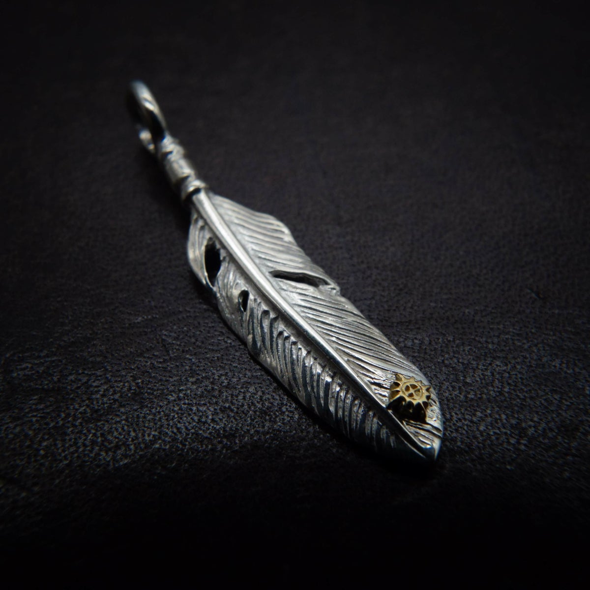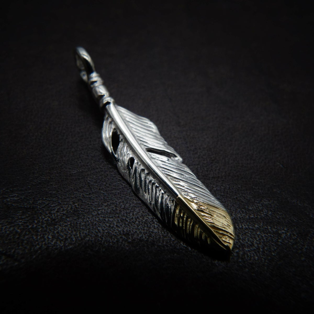 大フェザー左向き(メタル)×チェーン(プレーンフープ+プレーンフック)/ネックレスカスタム