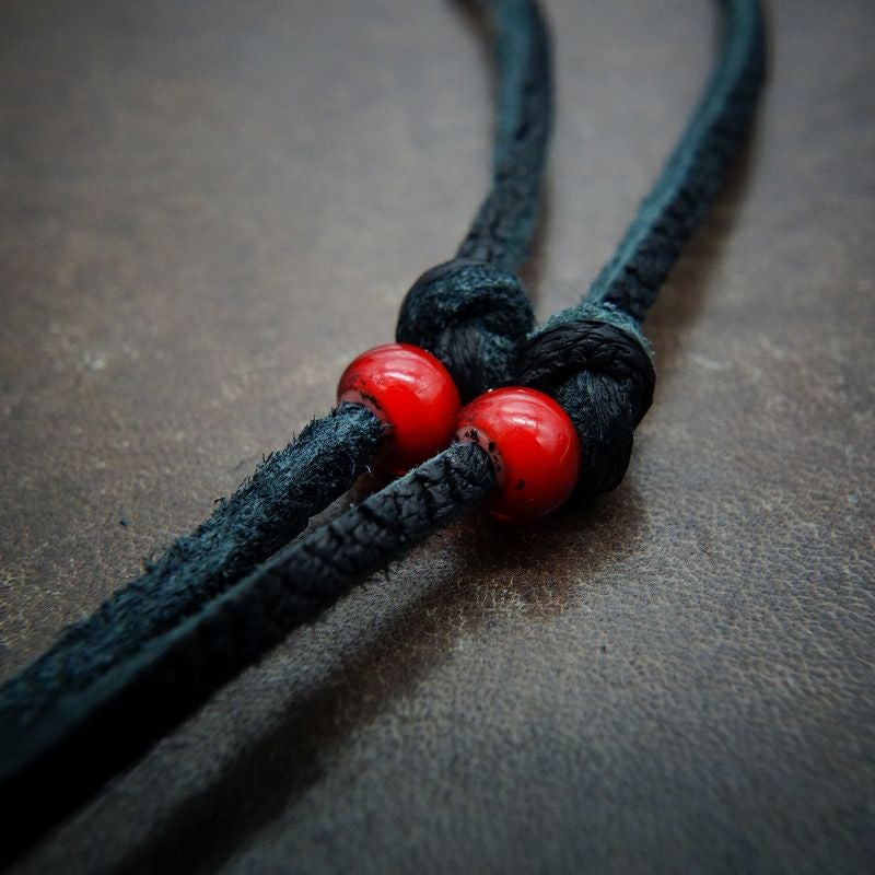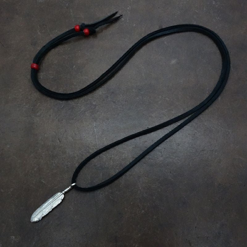 小フェザー左向き×鹿革紐×アンティークビーズ/ネックレスカスタム