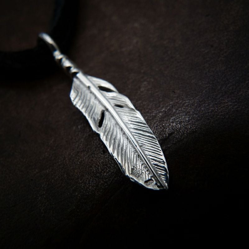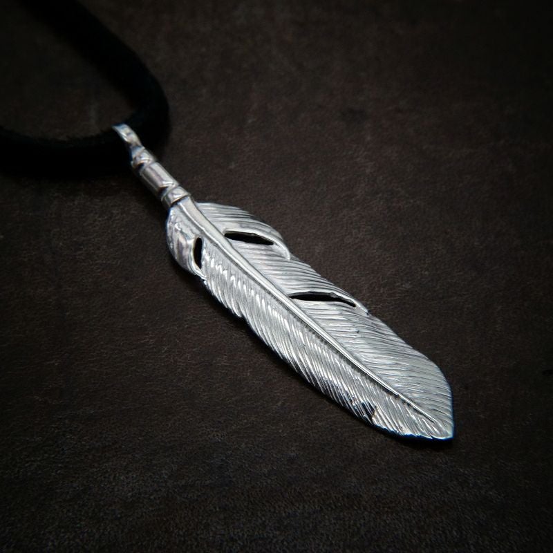 大フェザー左向き×チェーン(プレーンフープ+プレーンフック)/ネックレスカスタム