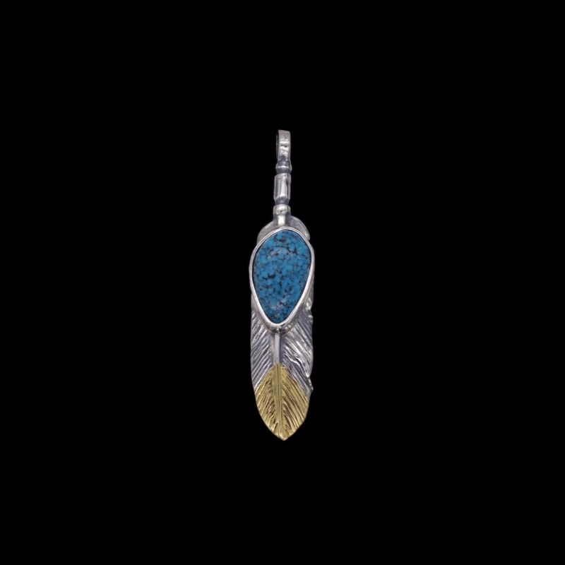 ターコイズ付き 小フェザー 左向き ペンダントトップ