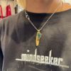 ターコイズを稲妻型にカットし形成が施された非常に珍しいターコイズ個体を使用。フレームのみのシンプルなデザインのペンダントに仕上げ。