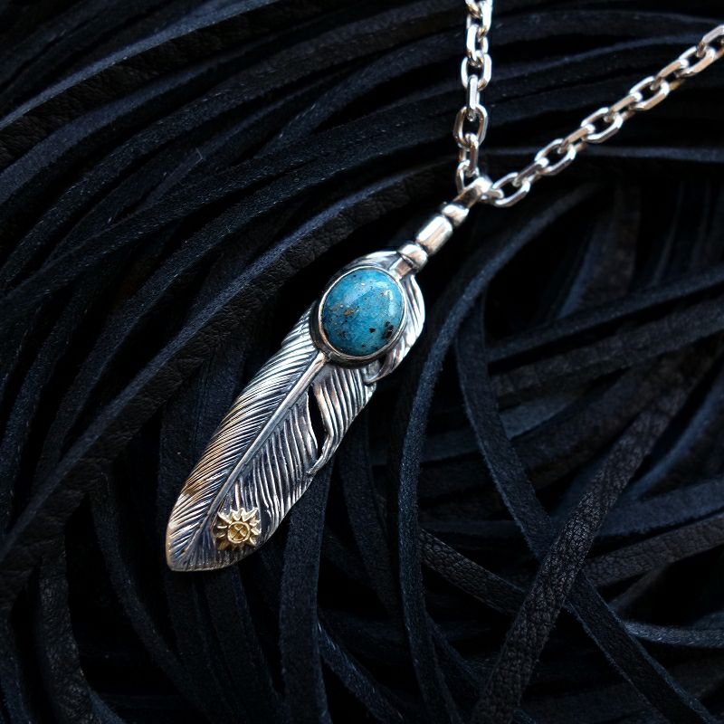 ターコイズ付き 極小フェザー 左向き ペンダントトップ