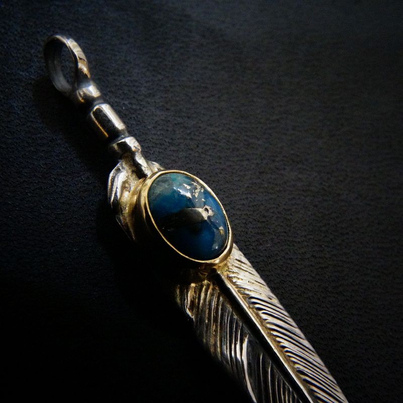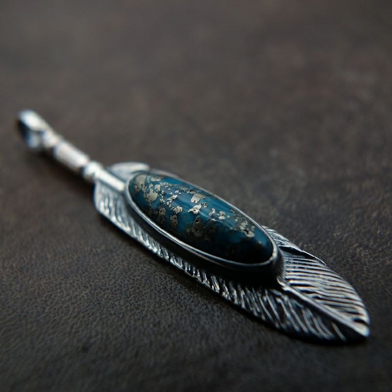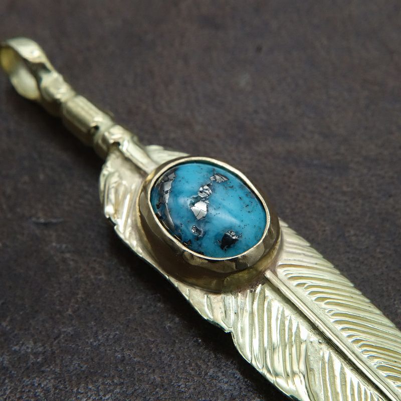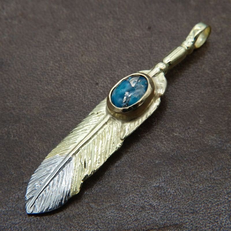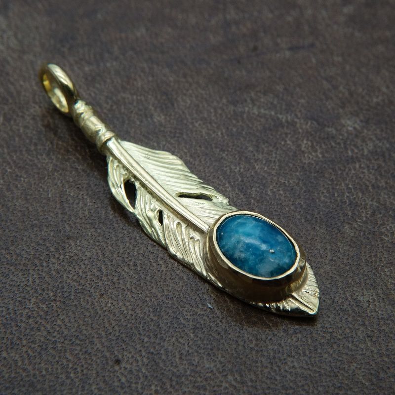 ターコイズ付き 小フェザー 左向き ペンダントトップ