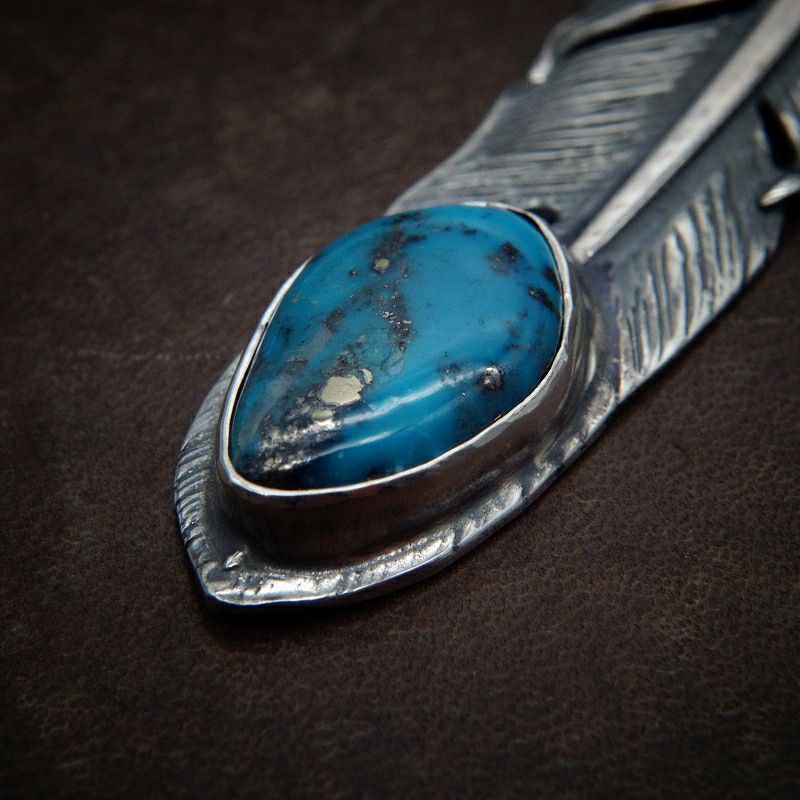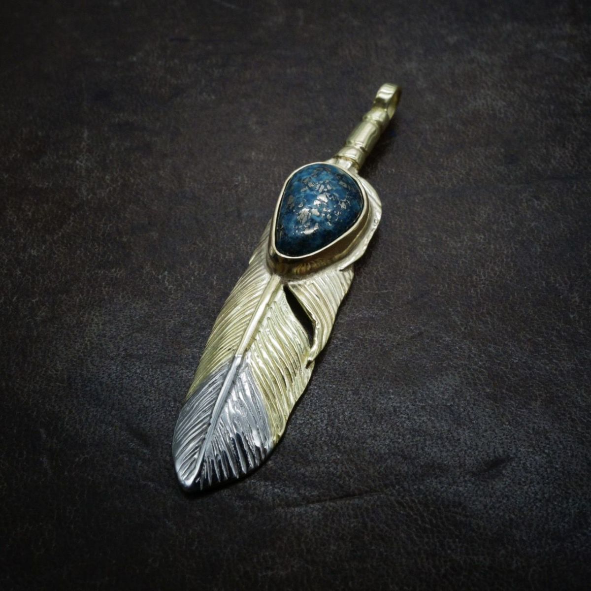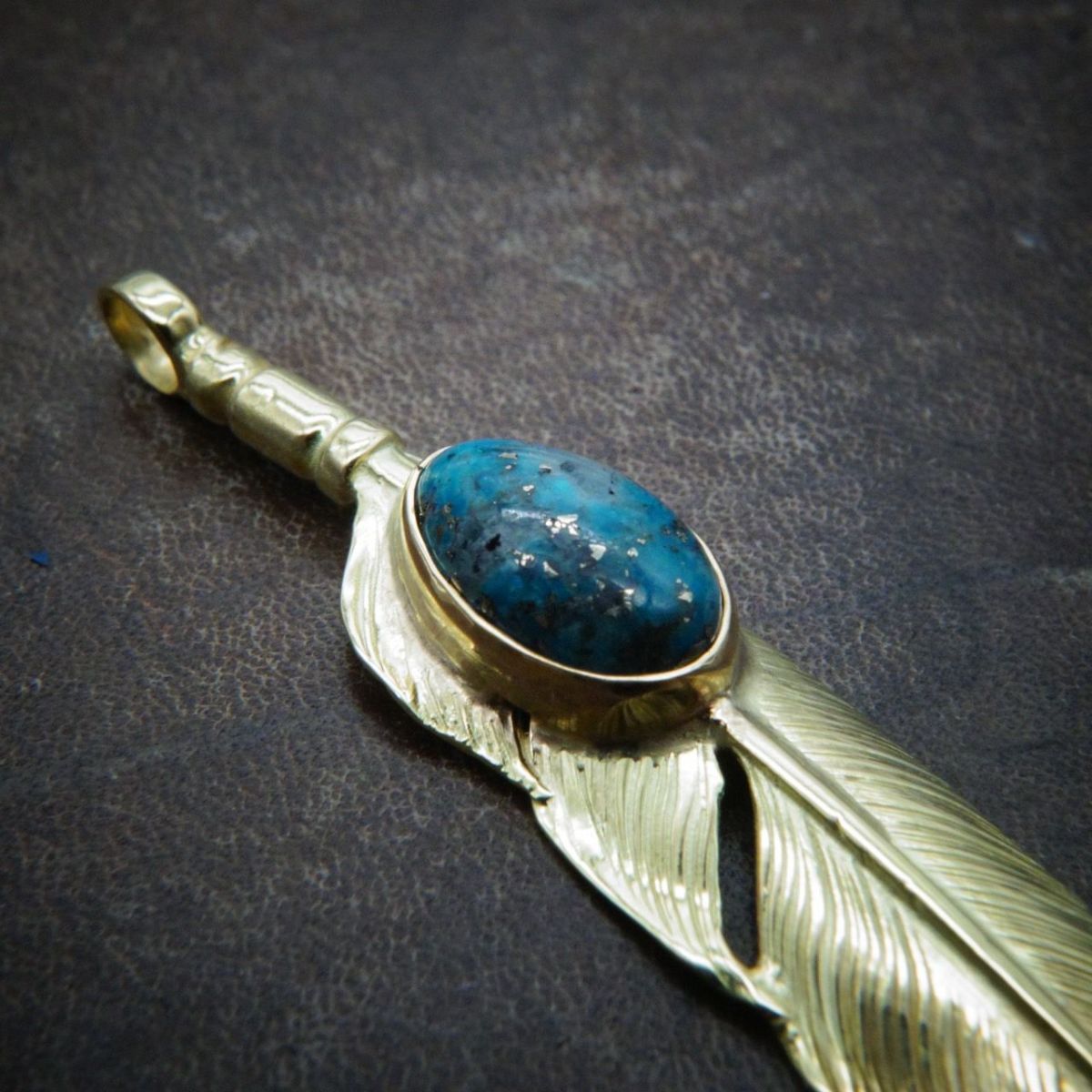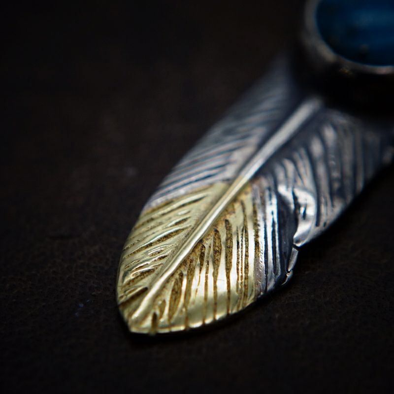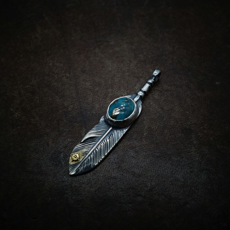 ターコイズ付き 中フェザー左向き ペンダントトップ