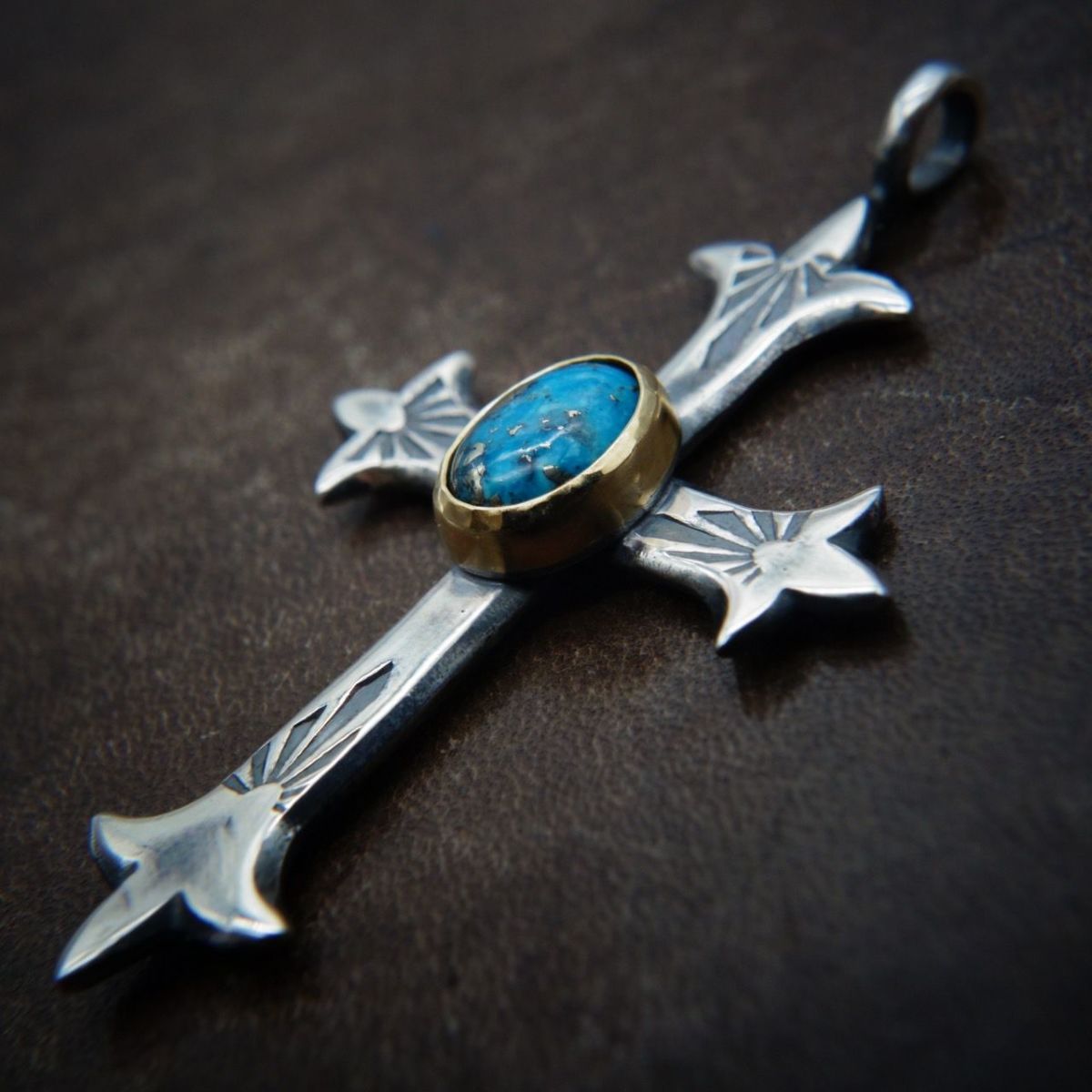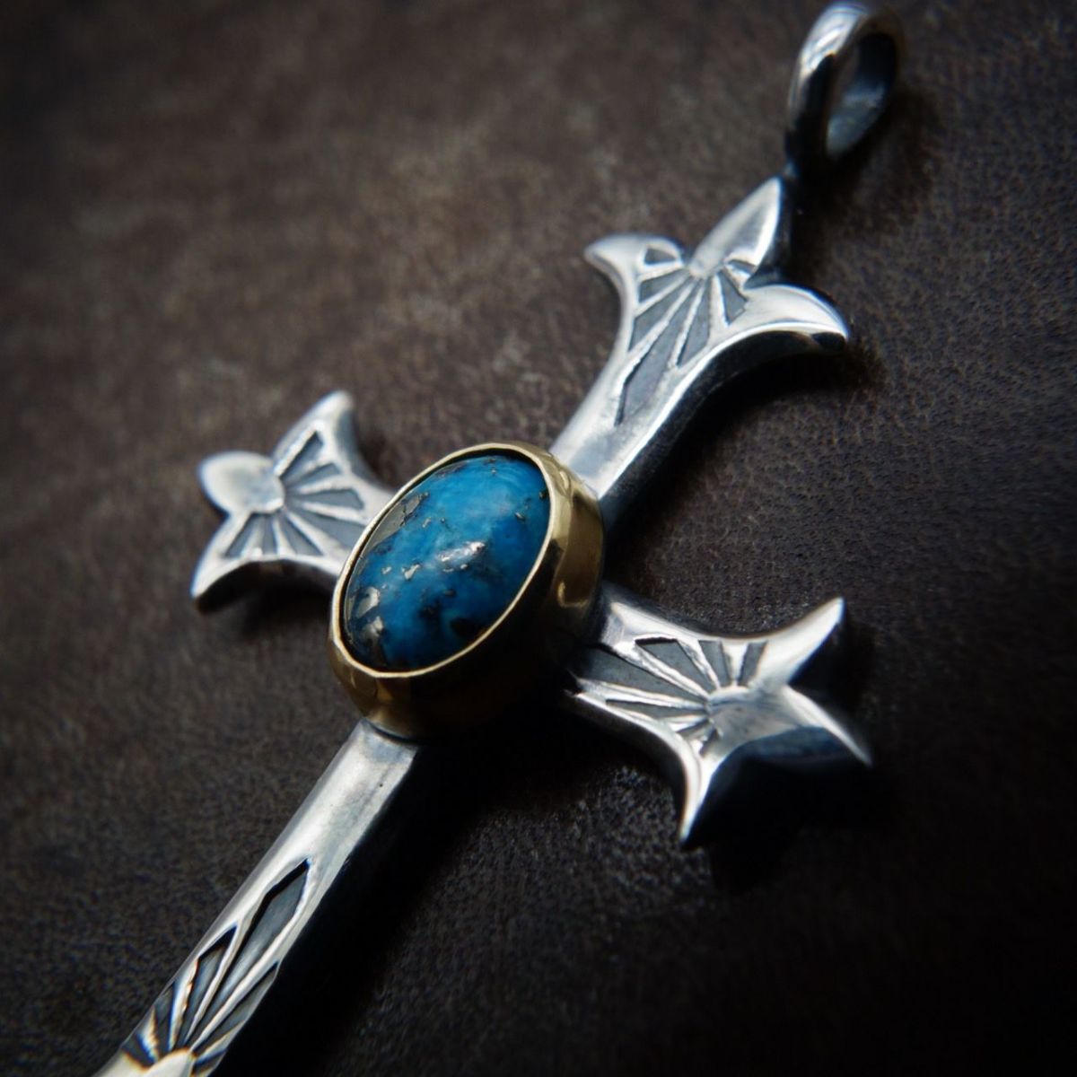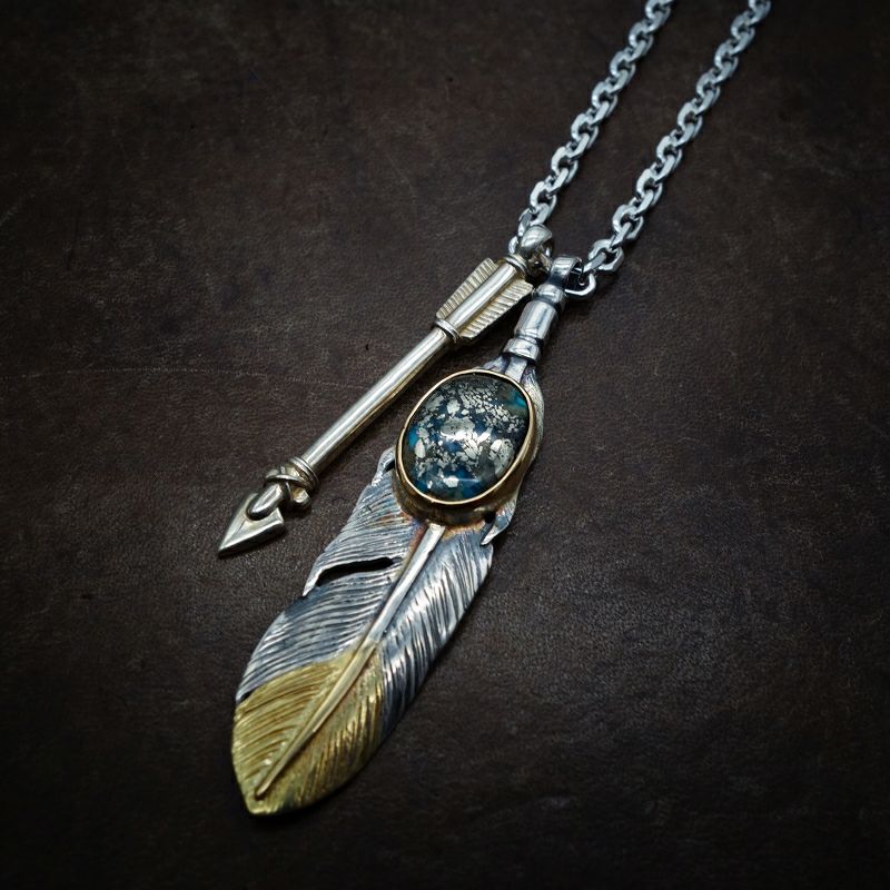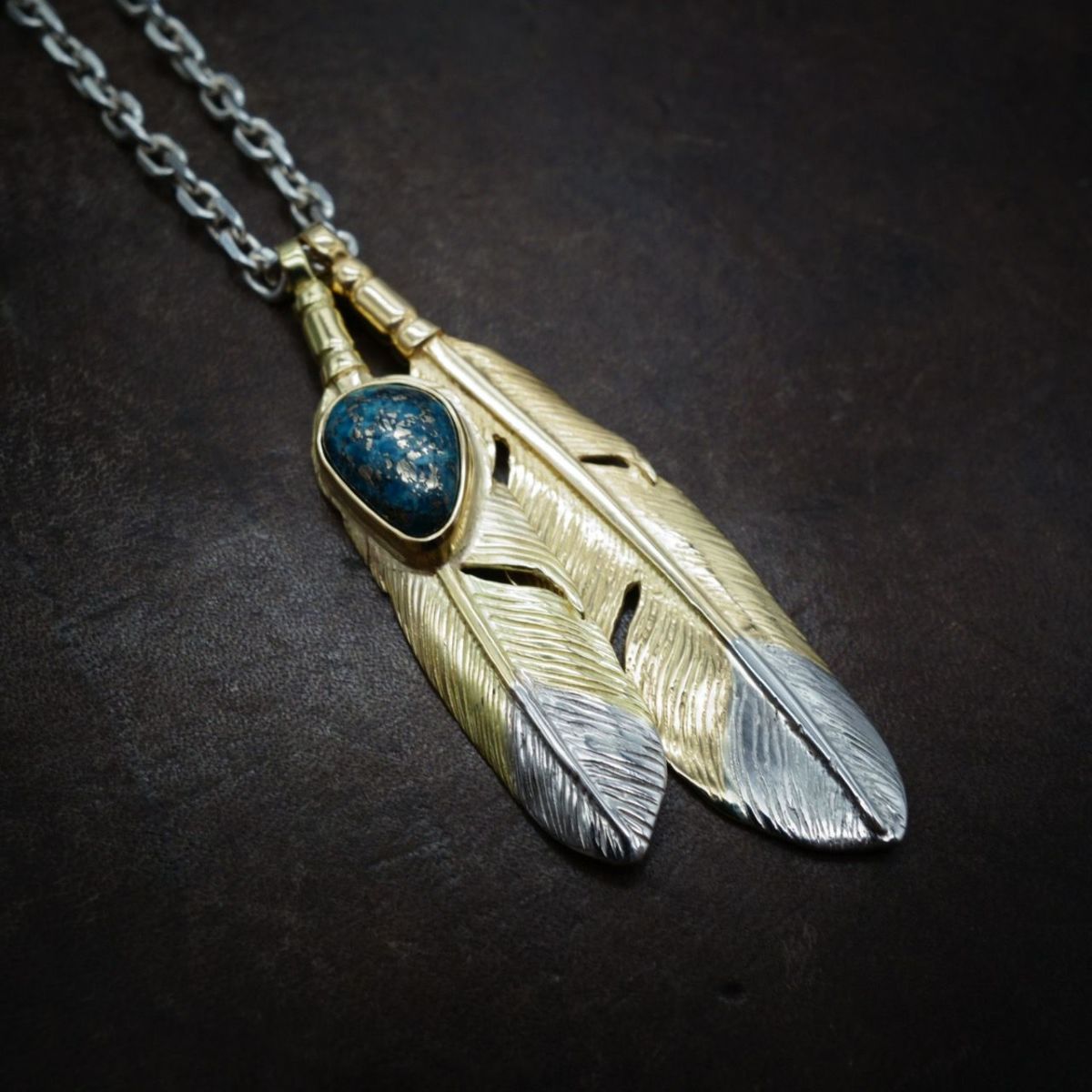 ターコイズ付き 中フェザー左向き ペンダントトップ